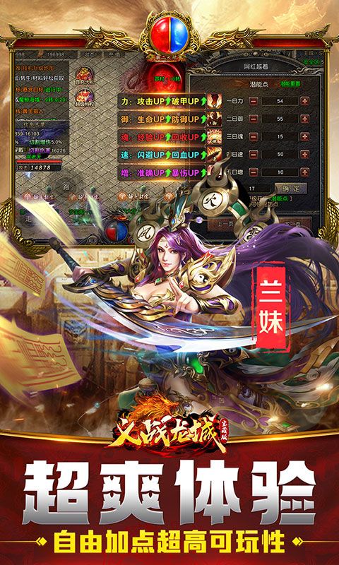《义战龙城》是一款经典传奇高攻速高爆率0.1折暴爽打金版本手游,全新悬赏宝藏版本重磅来袭,上线即拥有满攻速,超高爆率刀刀爆光柱神装神器全能爆,海量藏宝图悬赏、回收获得,海量超稀有道具等你挖掘!登录免费送万年魂环、老莫、大嫂、稀有称号时装等豪华大奖!专属强哥宝库海量道具真灵符回收畅快打金,所有充值0.1折,全场原版物价无套路!全新魂兽、魂环系统等你体验!