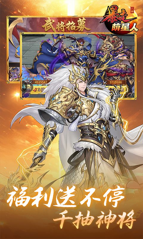 《暴走萌星人》是一款放置类玩法的0.1折卡牌对战手游,具有精美的游戏立绘,独具特色的角色外观,角色独特的养成玩法。《暴走萌星人》以三国为主题的世界观,可体验畅玩三国世界的快感;体验的不同的武将搭配阵容和独具特色的跨服对战玩法,丰富的游戏玩法,玩家可以自由对战固定的副本玩法,跨服公会战,巅峰擂台对战享受pk乐趣,让玩家可以组出自己的专属阵容,有神魔.冰.火.雷供玩家自行选择、丰富的养成玩法,武将新颖的养成玩法体验。升星.装备.神装帅印.天赋多种养成路线、展现国风的三国游戏风格,策略性的玩法给玩家最有趣的游戏内容、新颖的游戏关卡带来有趣的挑战玩法,获得强力装备提升武将能力。