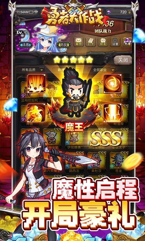 ★开局就送SSS级第六天魔王*1,钻石*8888,金币*100万,梅子饭团*100,绿色随机石*10,秘境骰子*10