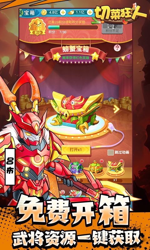 《切菜狂人(送魔改咸鱼刷充)》是一款Q版拟人画风的休闲放置挂机游戏,玩家在游戏中扮演一位绝世厨神,通过指挥蔬菜大军与怪物作战,培养成为一个顶尖厨神。游戏提供了多种多样的蔬菜角色供玩家选择,并允许玩家自由搭配组合,打造一个独特的蔬菜世界。游戏的主要活动包括招募狂欢、装备狂欢和战宠狂欢,这些活动分为不同的阶段,每个阶段都有其特定的目标和奖励。