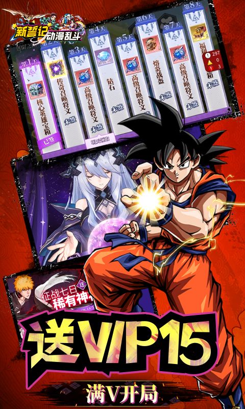 ★创角即送VIP15、极品神将孙悟空*1、彩钻*8888、钻石*188w,金币*888w