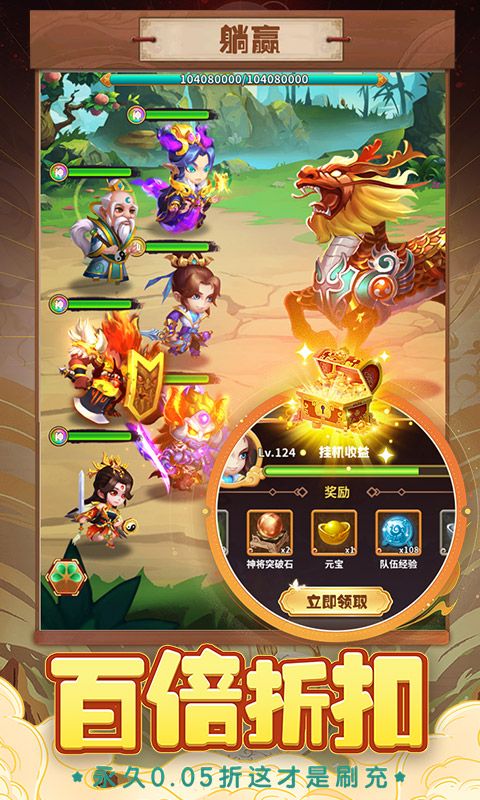 ★每天挂机、挑战首领,即可领取大量神将经验,神将碎片,神将突破石,银两等基础资源。