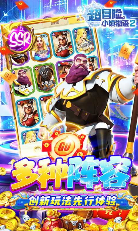 《超冒险小镇物语2》是一款放置休闲挂机卡牌手游。精美的美术画风,丰富的玩法拓展,创新的战斗模式,置身保卫城堡的紧张战斗中,体验割草刷怪的快感。策略至上趣味升级,自由排兵布阵,战斗中可操控释放英雄技能,体验策略战斗的无穷乐趣!