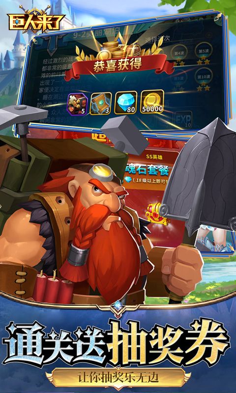 《巨人来了》是一款欧美魔幻题材的塔防手游,独创的卡牌式竞技塔防手游。充满了RPG冒险元素与传统塔防元素,同时拥有塔防与对战两个核心玩法,游戏在兼具塔防玩法的过程中原创了全新的指尖触发式玩法,并在战斗中采用了回合制的策略对战,二者完美结合!创新自由放置玩法,让塔防防守更灵活!绚丽的西方魔幻美术风格,塑造不一样的塔防世界!塔防与RPG元素的完美融合,快来感受刺激塔防RPG玩法!