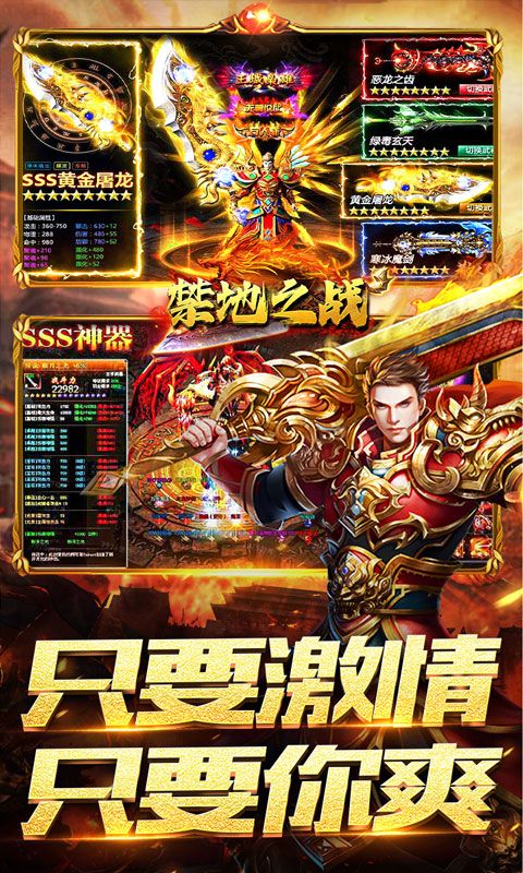 《禁地之战(0.1折爆充爽服)》神器超变光速刀版本,范围群伤切割,登陆送超多福利,首冲礼包,免费荣耀会员,游龙魂环,自动回收,范围捡取!超高爆率!全屏切割,炫酷范围群攻,助你砍遍全图!全新地图,超多隐藏福利等你来领,活动boss无限刷!充值货币无限爆!只要你敢来,就敢爆,激情攻沙,神魔阵营对抗,等你来战!全新超变无限刀福利版本来袭!还在等什么,快来加入吧!