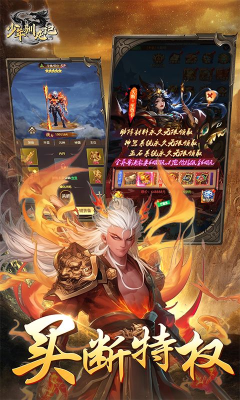 《少年驯龙记》内置折扣0.05折特权,超前放送!超高充值比例1元等于10w元宝,曾经面对648档唯唯诺诺,现在仅需3.24元便可重拳出击,此外还有万元红包、跨服福星祈福等众多活动及玩法,超愉悦级游戏快感等你体验。少年驯龙记是一款以上古山海经为背景打造的手游,游戏以上古八荒,异兽四大种族相互争斗,种族之间隐藏各种羁绊,放置挂机异兽养成!异兽自由培养,轻松进化无压力,还有众多让人沉醉的仙侠风光,炫酷华丽的战斗特效,激情十足的战斗系统,新颖有趣的社交玩法,收集各种异兽的乐趣,携手神女,同游仙途,勇闯上古八荒!