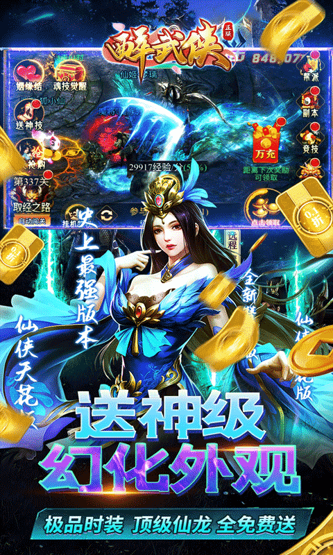 《醉武侠(0.05折GM无限钻石)》全新超爽指尖放置手游,上线直送VIP9,88888钻石;悠闲放置体验,轻松极速提升战力,平A输出瞬秒BOSS,掌握三大神器,称霸全服成为第一;还有无限钻石等你领,GM商城道具1钻石购买,福利活动领取充值币代替真实充值免费0氪礼包;还有0.05折充值,折扣力度之大全所未有!