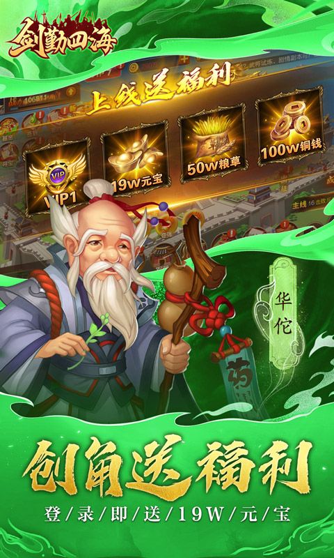 ★上线福利:VIP1、19w元宝、50w粮草、100w铜钱