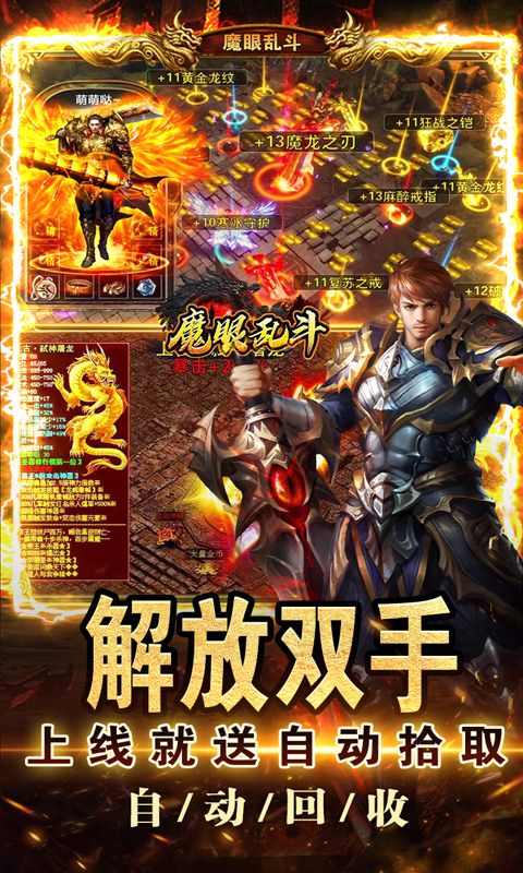 ★上线就送:自动回收,自动拾取,开天斩,逐日剑法,四圣之力,刀刀切割,冠名特权