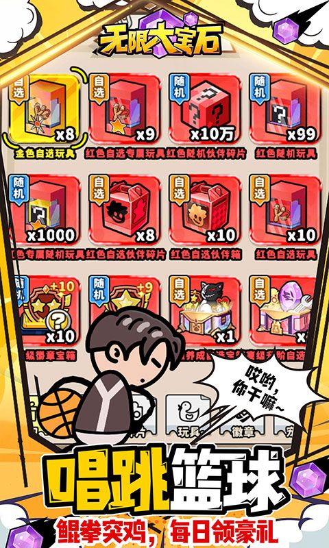 《无限大宝石(良心太美0.1折)》是一款卡牌福利放置手游。鲲鲲突鸡,唱!跳!rap!篮球!嗨翻全场!创角抽取无敌鲲拳宗师,零氪就畅玩,首充即大佬,轻松碾压boss,称霸全服,即刻享受大户快感!