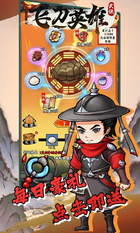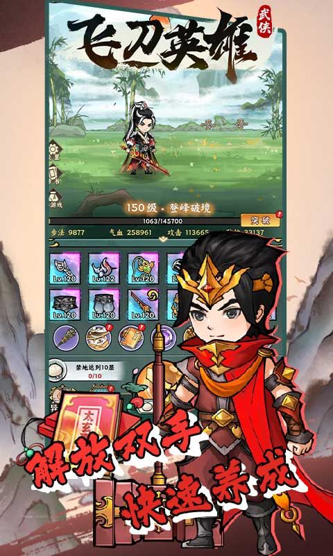《飞刀英雄(捶捶小妖0.1)》从无名小子一跃成为名动江湖的大侠,在江湖门派联盟林立的大千武道的世界里,寻找你的武侠之道,打造你的无双神器,缔造你的英雄传说