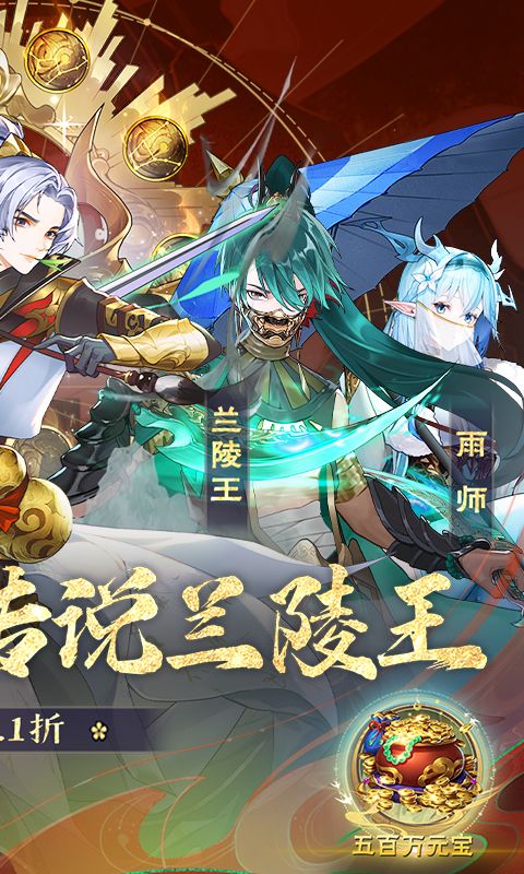 ★登录就送传说兰陵王*1,元宝*50000,高级招募券*100,改名卡*1,铜币*20w不容错过!