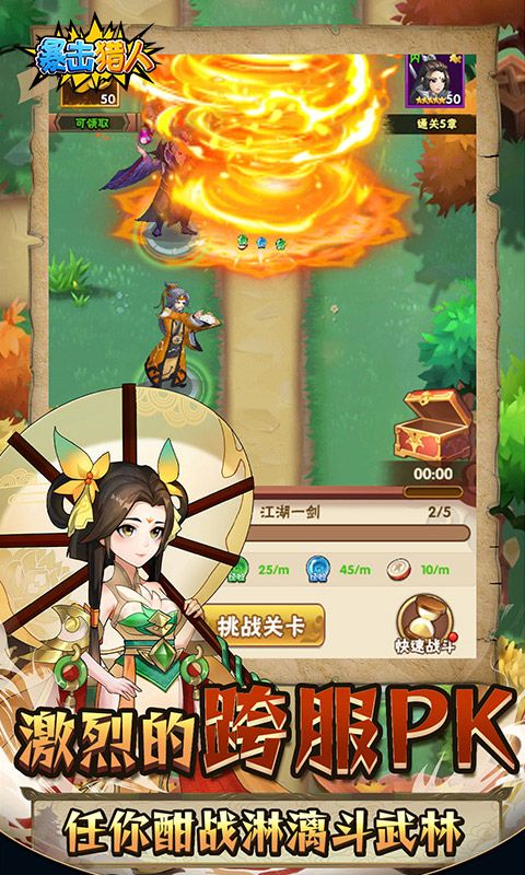 《暴击猎人(绝世武侠0.05折)》是一款塔防武侠手游,游戏背景来自于虚拟的世界,以东方武侠幻想世界作为游戏背景,讲述了异域雪山派大举进犯中原之际,玩家功成下山,在众多侠客的帮助下对抗雪山派,使中原免遭涂炭,保境安民的故事。现全场0.05折,玩法多多,卡牌对碰、塔防激战、跨服PK等等。玩家作为天赋异禀的江湖少侠,武功与学识皆有所成之后,拥有天下无双之力与运筹帷幄之能。聚天下英杰于华山之巅,对抗进犯中原的雪山派,立志保境安民,使中原免于浩劫。