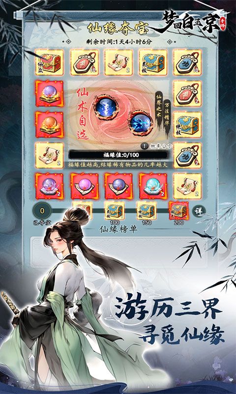 水墨国风修仙手游《梦回白玉京(剑舞0.1折)》还原最真实的修仙世界,红尘千百转,讲述一位普通的平凡的修炼者开宗立派,运转禁忌仙术、撕裂星空,打造灵性仙兵、参悟修仙秘法,我欲长生!修天道,历红尘,斩邪魔,砺我心,窥得一剑开天门,从此天地遨游任我行。开宗立派,混战群仙,论剑台,齐论道,飞剑指八荒,求得一方逍遥天地,筑成仙大道,纵横三界;