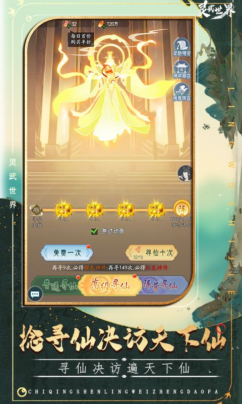 《灵武世界》是一款以收集养成各类神将的神话修仙手游,超爽打击感的修仙游戏。背景是以宗门危机开始引发的一系列修仙故事,你将作为仙门弟子,招募各路传统神话人物作为神将,创建属于自己的宗门,参加宗门大比,讨伐魔域,一步步成为修仙小说里的最强主角!