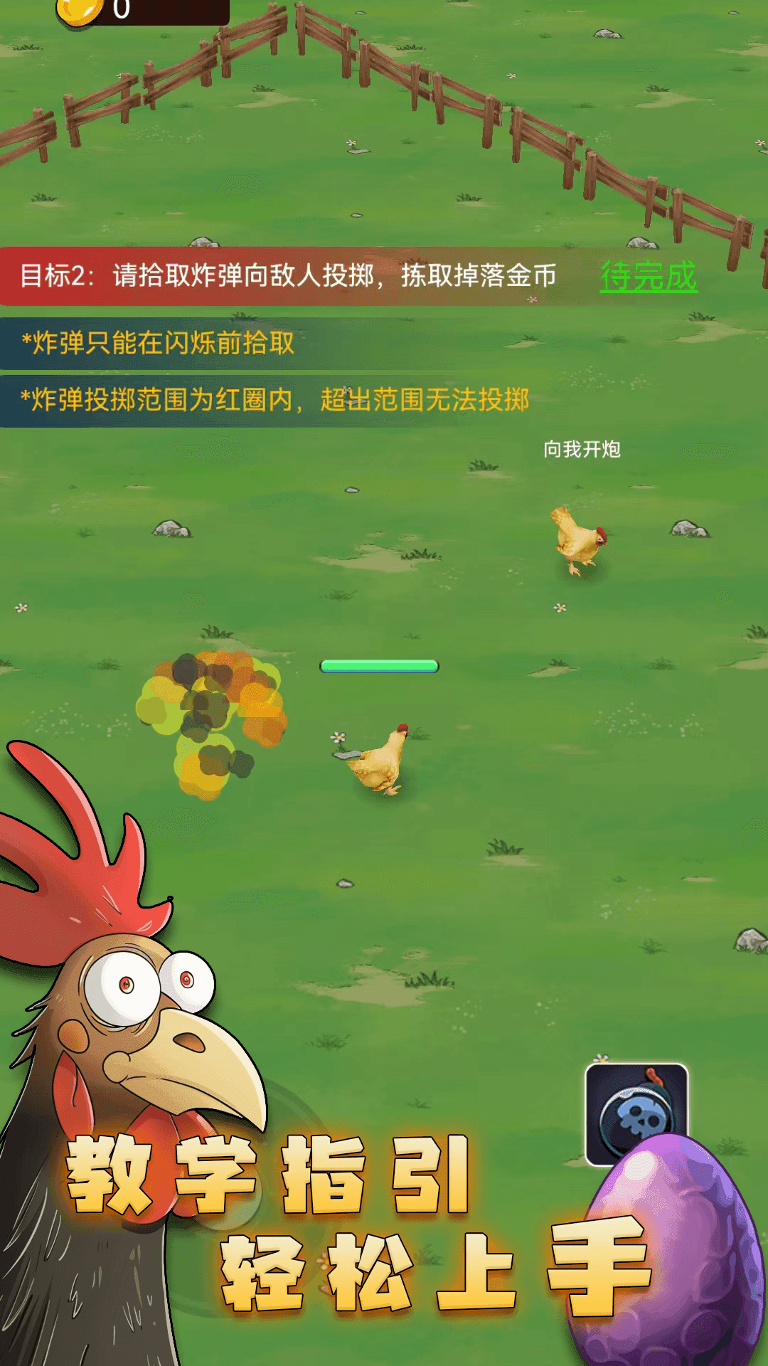 《最后幸存鸡》是一款以小鸡仔为萌物主角的竞技对抗休闲游戏,鸡仔们不仅是与农场主一方的恶势力作斗争,彼此之间也有各种爆笑有趣的对抗模式。游戏中存在一定强度的竞技对抗,作为一只小鸡仔,如果摆脱不了自身宿命,那么最后的结局只能成为农场主的盘中餐,欢迎各位玩家来解锁一只鸡的各种烹饪方式。