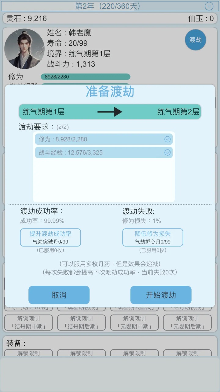 《平凡人来修仙》是一款深度沉浸的文字修仙游戏,带您领略波澜壮阔的修仙世界。在这个神秘而充满挑战的世界里,您将体验到修仙者的生死轮回、炼丹炼器的无穷魅力,以及突破重重劫难的惊心动魄。******核心玩法******「寿命系统」修仙之路漫长而艰辛,寿命成为您最宝贵的资源。若不能在有限的寿命内突破瓶颈,您将面临生命的终结。因此,合理规划修炼时间,珍惜每一分资源,是修仙者必须面对的课题。「炼丹系统」踏入秘境,探寻珍稀材料,亲手炼制出各种神奇的丹药。这些丹药不仅能帮助您突破瓶颈,还能在战斗中发挥巨大作用,助您一臂之力。「炼器系统」法器是修仙者的重要伙伴。在游戏中中,您可以亲手炼制各种法器,将普通材料打造成强大的武器。不同的法器拥有不同的属性和技能,助您在修仙之路上更加得心应手。「历练系统」根据个人实力,选择不同的历练区域进行探险。每个区域都有其独特的奇遇和资源,以及不同的修炼速度。在历练过程中,您将不断成长,迎接更大的挑战。「天赋系统」气感、神识、根骨、悟性和机缘,这五大天赋将影响您的修炼速度和战斗能力。如何合理运用这些天赋,成为修仙之路上的一大关键。「灵根系统」金木水火土五大灵根,决定了您的修炼方向。不同的灵根拥有不同的属性和技能,而天灵根和伪灵根的设计更是让修仙之路充满变数。「渡劫系统」修仙之路充满劫难。在《仙域问道》中,您需要突破重重劫难,才能突破瓶颈,得道升仙。每次渡劫都是对您实力和意志的考验。「秘境系统」神秘的秘境中蕴藏着无尽的资源和奇遇。根据自己的实力去秘境历练,获取珍稀材料,提升自己的实力。在秘境中,您将体验到前所未有的挑战和收获。「功法系统」不同的功法适合不同的灵根和天赋。在《仙域问道》中,您需要根据自己的属性去选择适合自己的功法来修炼。掌握合适的功法,将让您的修炼之路更加顺畅。「天劫系统」当您的修为达到一定境界时,将面临天劫的考验。天劫是天地之间对修仙者的考验,也是您突破瓶颈、得道升仙的必经之路。勇敢面对天劫,迎接修仙之路的巅峰挑战。~~~还有更多的系统等你来发现哦~~~