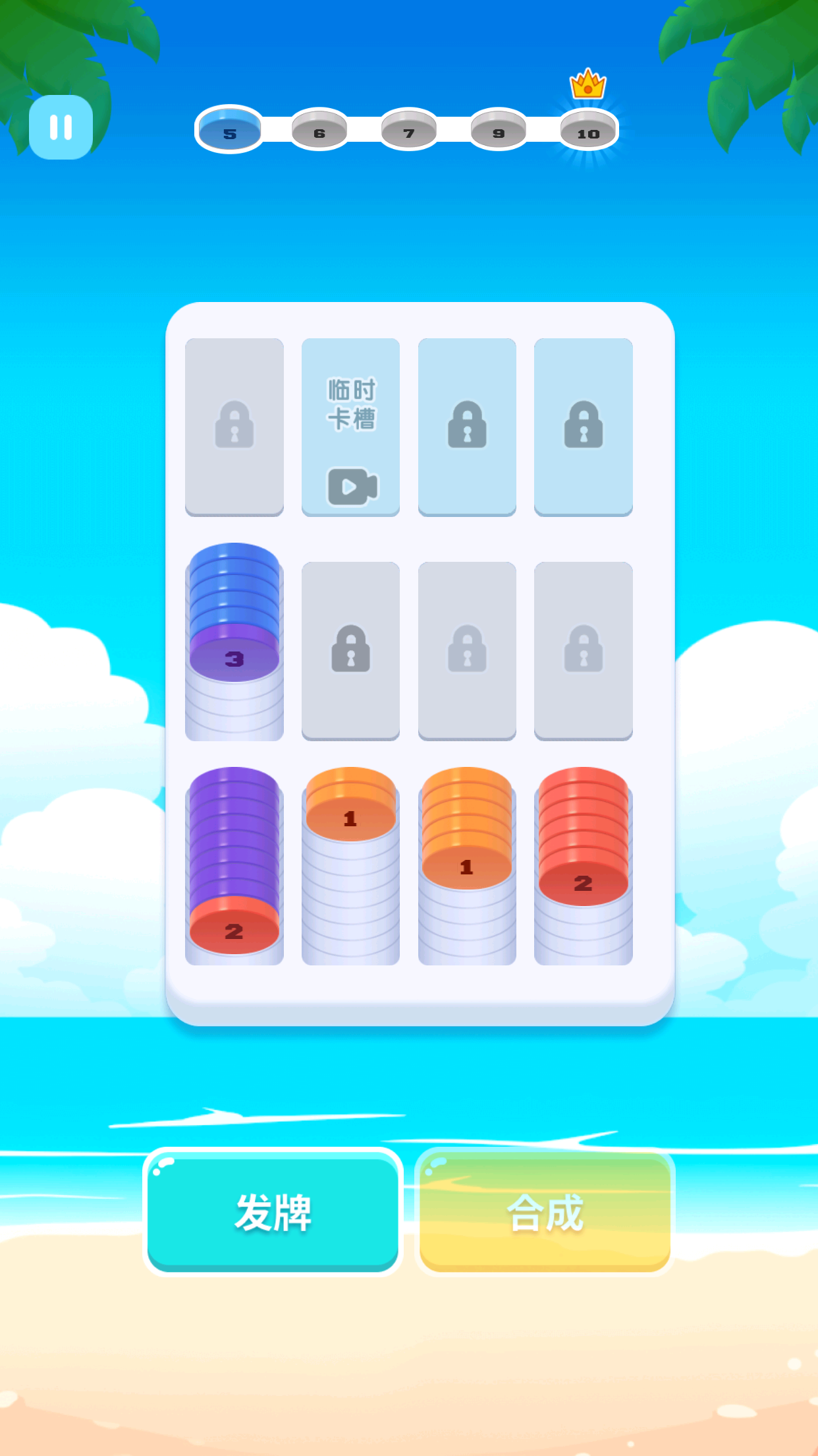 “超级解压大师-合成数字”是一款颜色匹配和硬币合成排序应用,具有最新的创意和乐趣。与市面上的球球排序、水排序、合成消除最大的不同之处在于我们的应用具备极简的操作方式,让挑战充满了乐趣。你的任务是将相同颜色的硬币收纳归置到一起,填满格子后合成更大的数字。快乐码码,整合、合成、消除,这款应用将为你带来激动人心的体验!挑战目标:将相同颜色的筹码移动到同一排,当一排筹码颜色相同并装满时,你可以合成新数字。挑战你的智力,看你能拼出的最大数字是多少!操作方法:1. 将相同颜色的数字币移动到相同颜色的数字币槽中。2. 观察所有币槽中的数字币,策略性地确定它们的移动顺序。移动顺序决定了你是否能合成,最大能合成什么数字,最久能够玩多久,发挥你的智慧吧。3. 随着你合成的数字变得更大,你将解锁更多的槽位。4. 如果遇到难关,不要担心,你可以使用道具来帮助你。解锁临时槽位将在紧要关头暂时拯救你,但槽位有限,所以要明智地使用!应用特点:1. 操作简单、交互流畅:只需一步操作即可移动金币,让整个过程更加流畅!2. 丰富多样的关卡:我们的解压高手提供了1000多个挑战等待你的解锁,快来整理硬币们吧!3. 多种功能,个性十足:我们提供了两种模式,极限挑战和普通模式。极限挑战要求你完成每一关的任务,而普通模式则以拼成最大数字为目标。适合用户:"超级解压大师-数字合成"适合各年龄层的用户,是一款有趣的益智休闲解谜应用,老少皆宜,可以锻炼你的大脑,放松解压。让我们一起享受这款精彩的排序匹配应用吧!