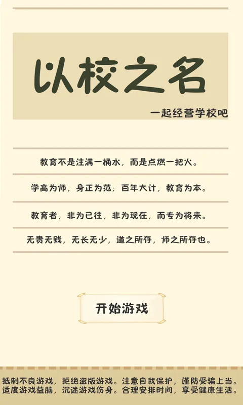 模拟学校经营,你来当校长,怎么排课,放不放假,都由你说了算,经营过程中遇到的各种突发事件该如何处理,每年的高考该如何准备,这都将是你的考验,你的目标就是将你的学校发展成世界一流名校。