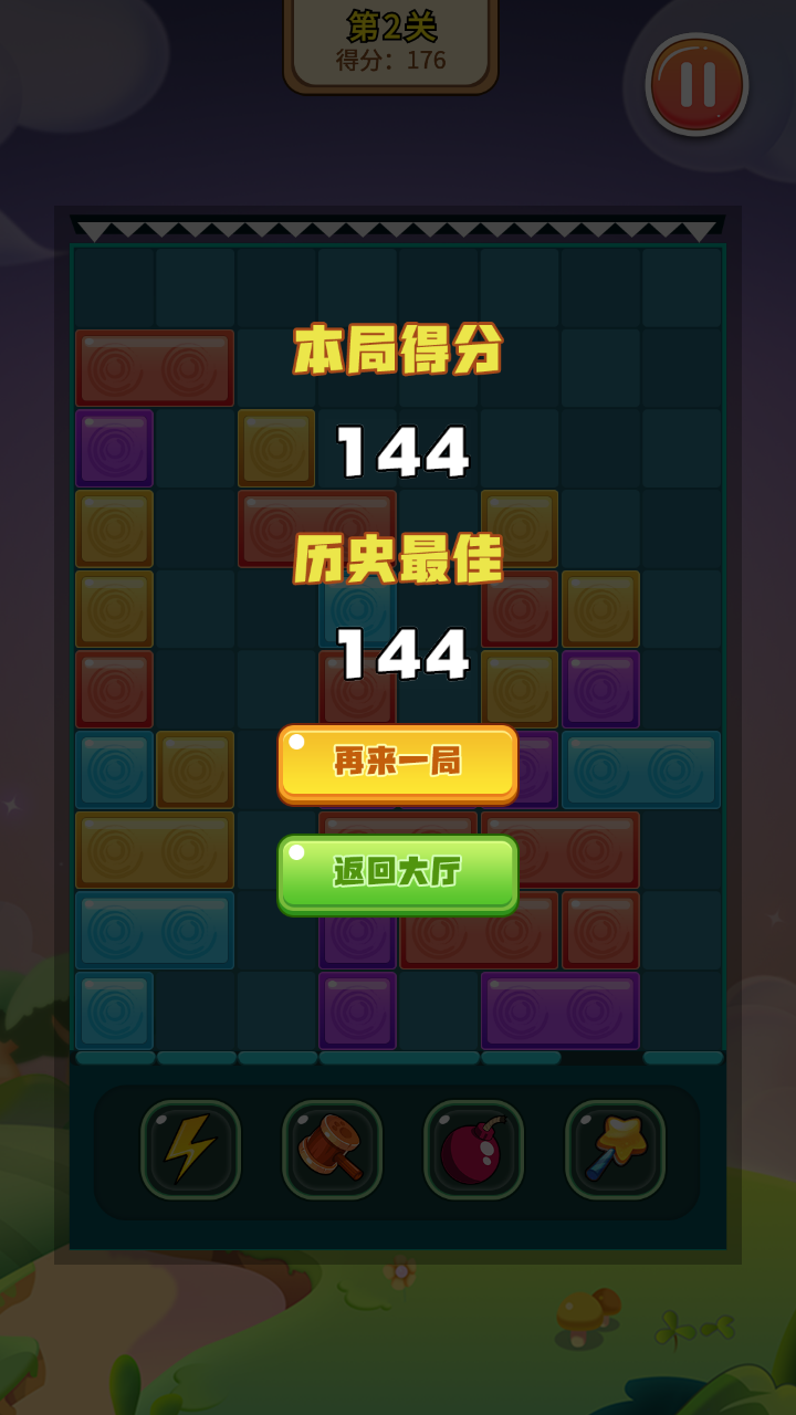 左右移动方块使方块下降,当一横排方块满后可以消除