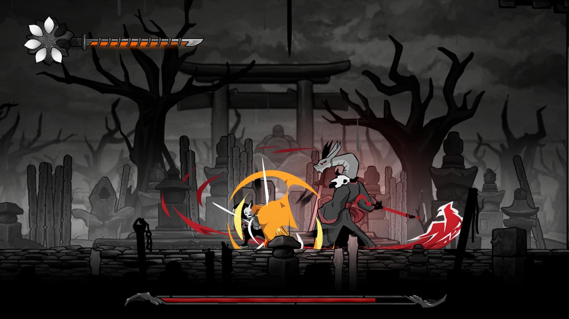 运命千丝缚独囚魂飞灵散战不休寒光砺破森罗影朗月扶风八万幽故事:拼死诛神的“愚蠢武士”主角“灵”是一名游荡在灵界中的武士,受某种使命或是诅咒驱使着——不停向自然中的一众神明发起挑战,以收集其力量。扮演“灵”探索这个神秘的灵界,深入找寻这一切的根源。游戏玩法——豪快飒爽的连战+连斩!在快节奏的战斗系统中,请充分利用你手中的剑。除了多方向的刀剑攻击,“灵”还可以执行各种能力,如闪避、反墙跳和踩头。运用基础的技能组合并提高技巧上限是本作核心要素。独特机制——特殊的敌人难度变化机制作为一款动作游戏,本作拥有极富挑战性的敌人。每个神明都拥有独特的技能动作、移动方式、策略与战场。当你打败它们时,其力量会为你所用,但请注意后续挑战也会变得更加凶险。选择适合你的攻略顺序对于获得胜利至关重要。艺术风格——剑戟片+和风神灵的绝妙交融经典武士电影(剑戟片)以手绘动画的方式呈现,每场战斗都有与神灵相称的场景设计,能让你体会到精巧的黑白艺术。在表达神灵之力时,针对其招式动作进行上色,确保画面兼顾美感与功能。