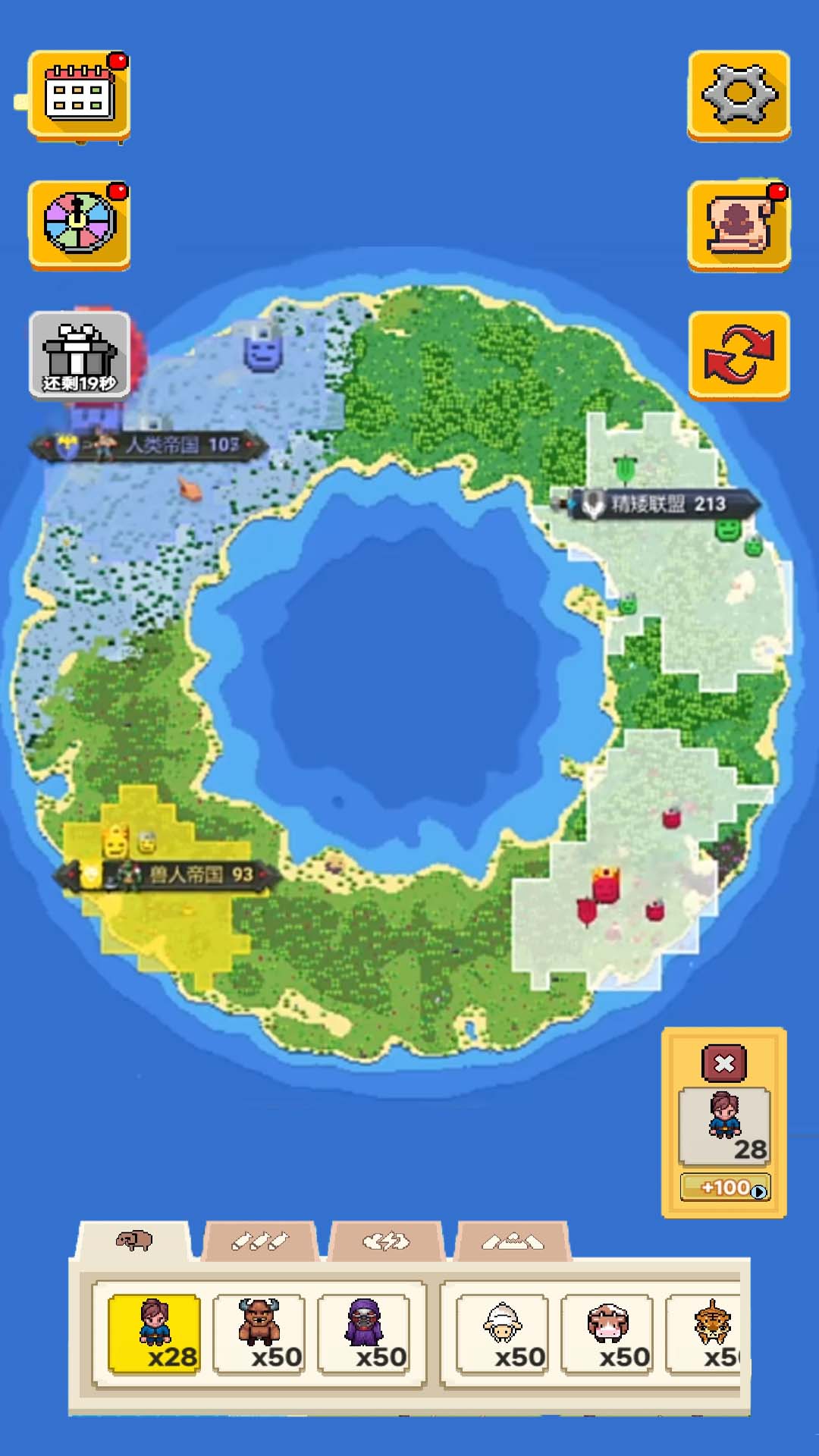 《像素种族战争》是一款休闲放置小游戏,玩家可以在多片大陆上放置各种生物,并让他们不断发育壮大,互相进行战斗,快来体验一下吧。