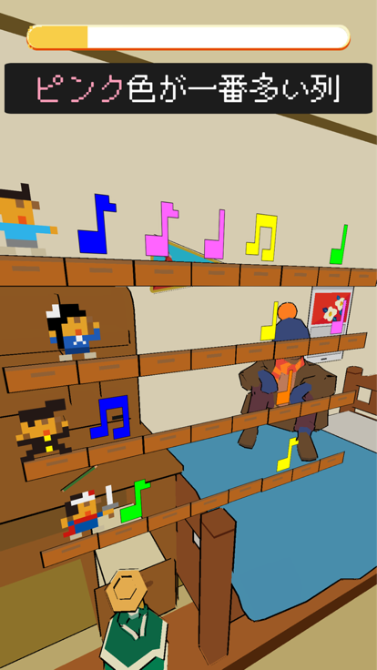 哪张纸条的颜色最多? 一款简单的大脑训练游戏,训练你的空间识别能力! 一款超级简单的益智游戏。诊断你的大脑年龄。玩法非常简单。只需选择并点击符合主题的音符即可。玩得越多,你的大脑就越被激活。玩得开心!