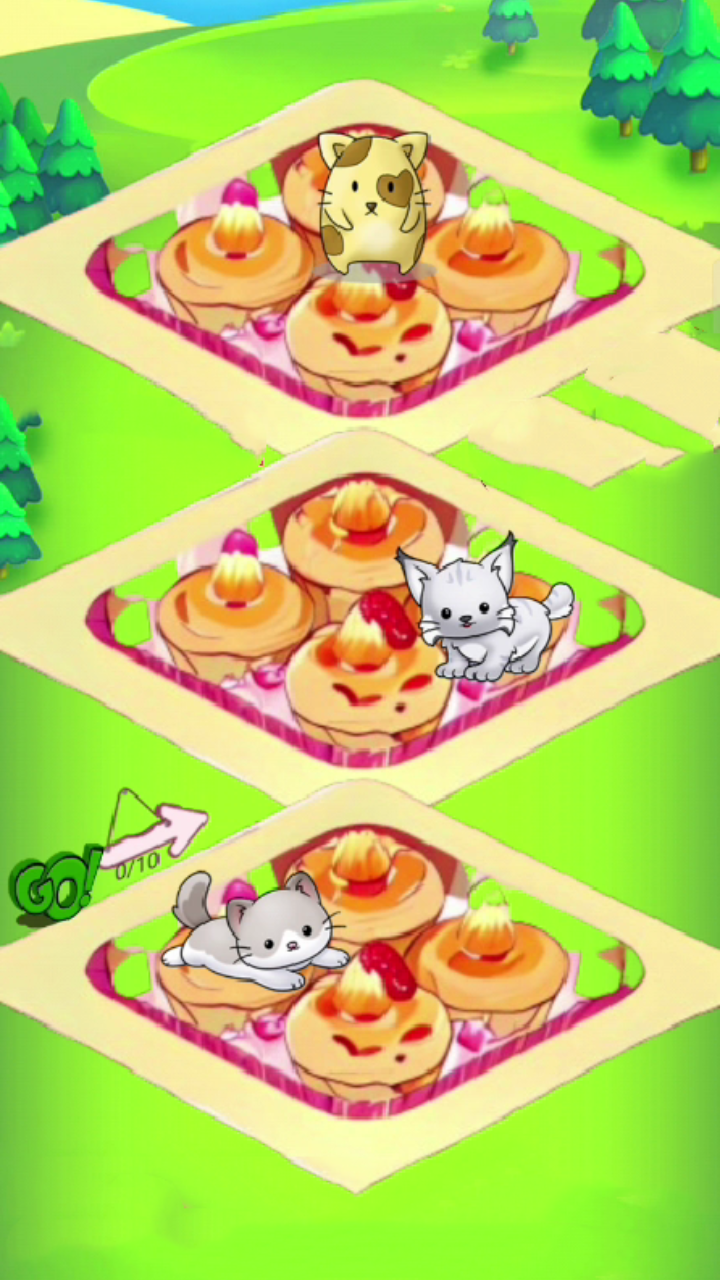 这是一款以猫咪合成为主题设计的休闲游戏,游戏的玩法也非常有趣,玩家进入游戏时只需要根据提示把相同类型的猫放在一起,就可以合成新的猫咪角色。
