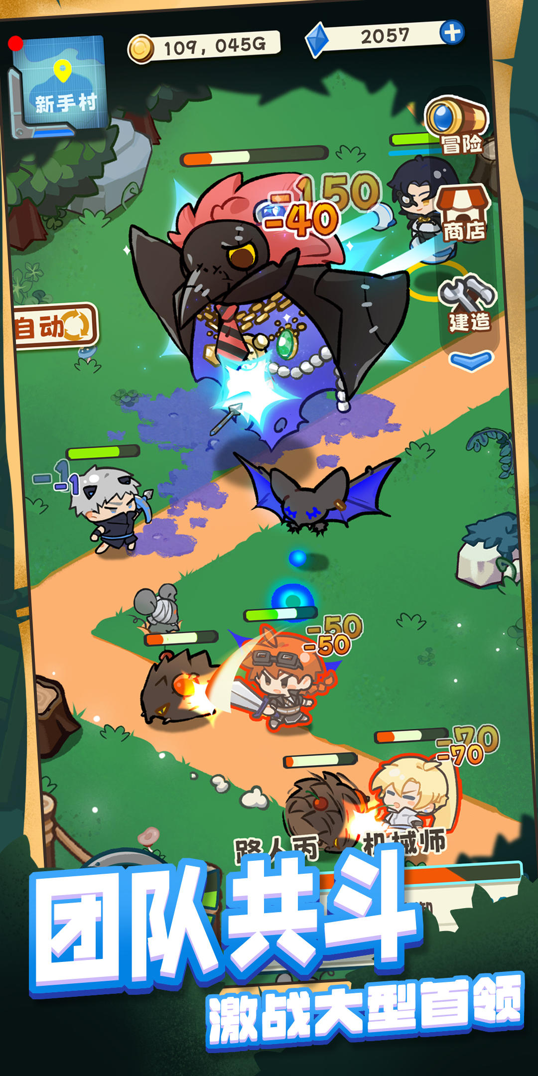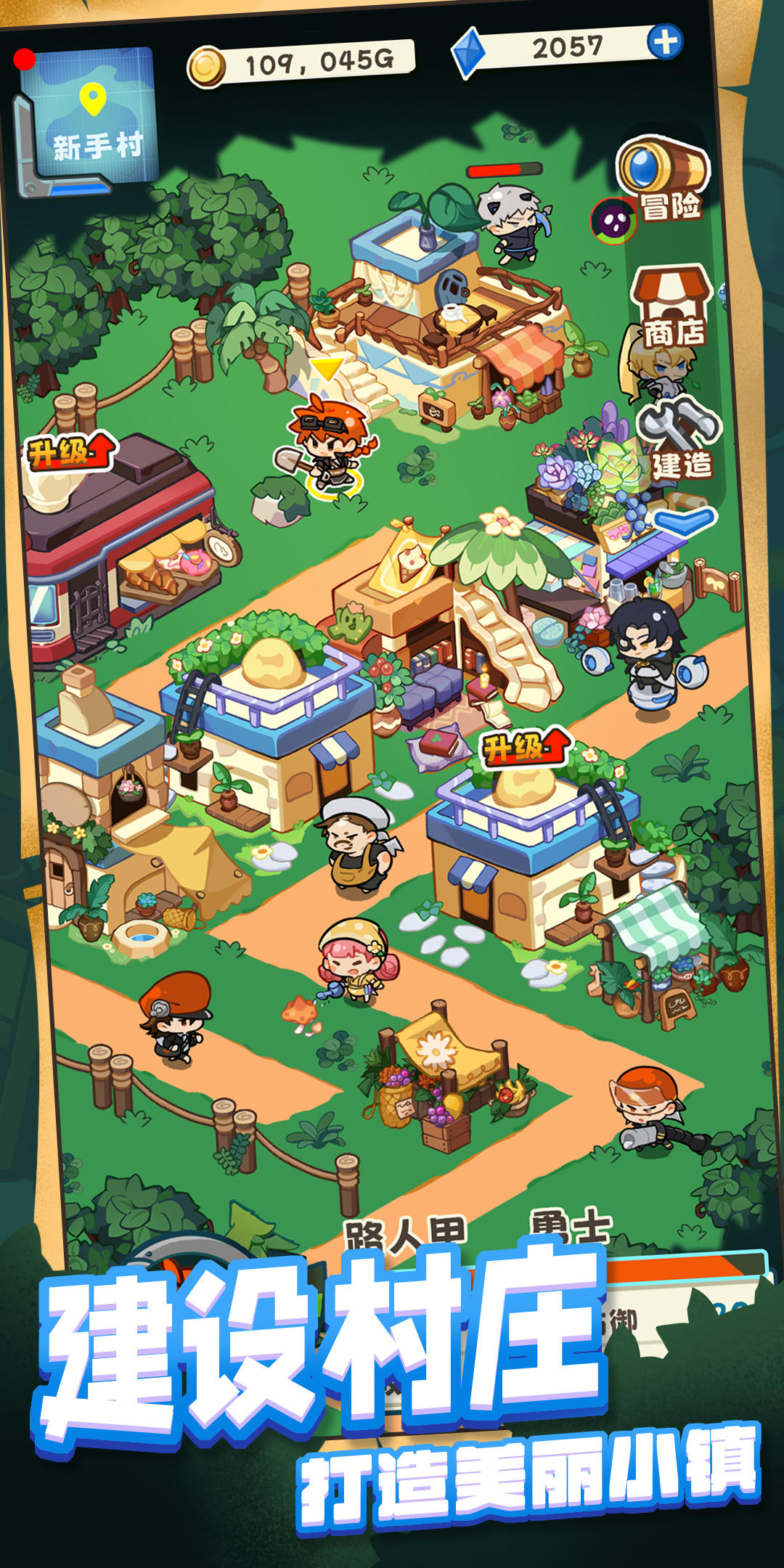 在传说中的大陆有个传说中的地方,那里有座传说中的新手村,据说很多传说级冒险家都是从那座新手村锻炼出来的,每一位想当冒险家的新人都会在这座新手村收获到很多的知识以及提升自己的能力。在新手村,你可以【招募】能力不同的新人冒险家;在新手村,你可以【建设】冒险家们想要的建筑,提升他们的满意度;在新手村,你可以【转职】新人冒险家,让他们越来越成熟,越来越可靠;在新手村,你可以【结缘】两位情投意合的冒险家,让他们培养出更强的下一代;在新手村,你可以【讨伐】各种怪物和首领,完成委托获得丰厚的报酬;在新手村,你可以【冒险】,去不同的副本收获不同的宝物;总之,在这座传说中的新手村,你能享受到冒险的快乐时光!