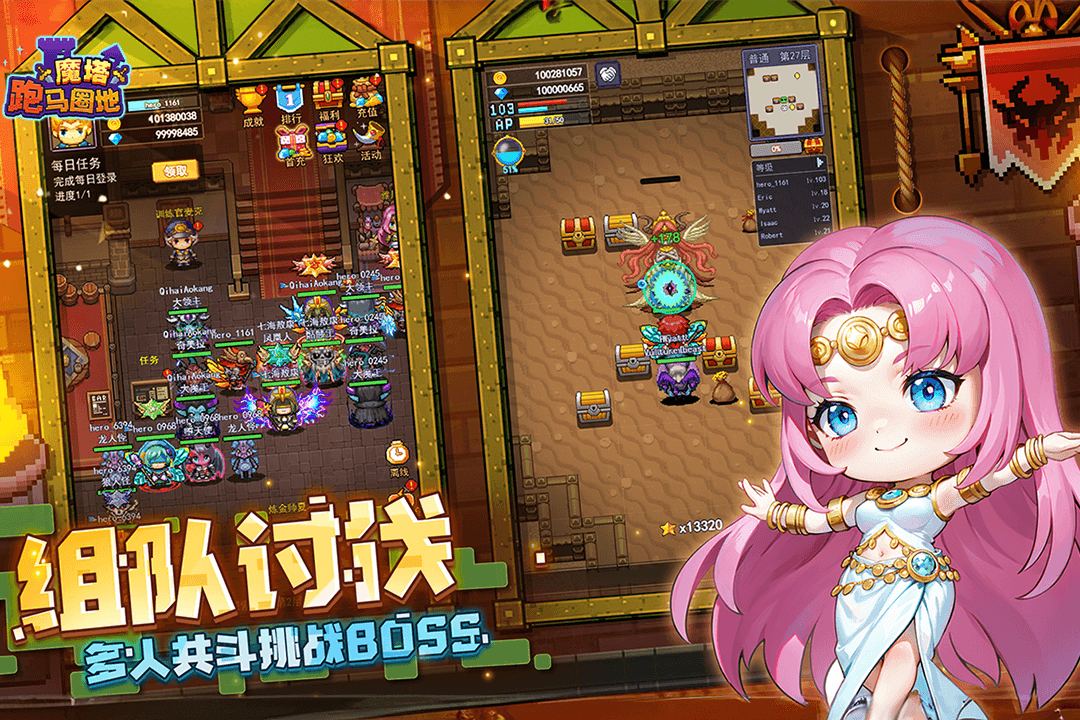 《跑马圈地》是一款探索冒险类的Roguelike游戏,支持多人同屏的即时战斗。游戏支持两大阵营,玩家可以独立冒险,也可以加入阵营和多个好友一起冒险。游戏中有丰富的阵营活动玩法、占领领地玩法,每晚有各大阵营和世界Boss的争夺战。