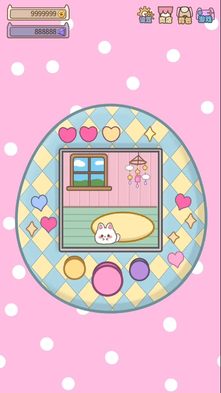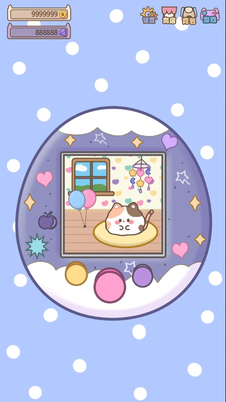 重拾童年的电子宠物机,模拟养电子宠物,在这里你可以从一颗蛋开始慢慢养成,等待宠物养成后的惊喜玩法介绍:通过各种小游戏赚取金币,为宠物机装饰,给宠物的家重新装修,帮宠物装扮等等