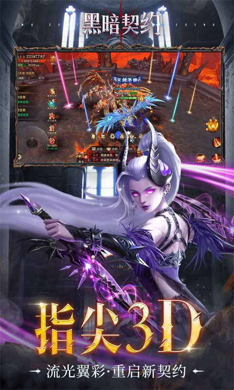 3D魔幻MMOARPG手游《黑暗契约(满屏0.1折)》真实永久0.1折重燃战火!开局VIP8,真充卡寻宝钥匙无限送,一秒不用等,在为你带回经典爽快战斗体验同时,更为你带来激爽炫战的豪华视觉盛宴。宏大世界观为你打造“真魔幻”的沉浸式游戏体验,史诗级还原魔域经典场景,重新踏上这一望无际的魔幻大陆开启你的“弑神之战”,觉醒“大天使装备”激活炫酷外观,决战“最强王者”,挑战极限魔幻大陆。