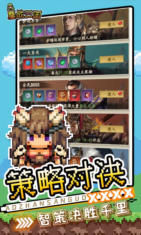 《三国仙侠志(0.05折像素群雄)》是一款像素回合制游戏,传承经典系统的同时,创新游戏玩法,乱世风云,烽火连天,英雄辈出,每一个人心中都有一个英雄梦,每一个人都幻想自己身处乱世当中会如何功成名就,无论是攻城略地,还是智慧谋略,都可以让玩家带领各国名臣猛将一统天下,玩家将扮演一位建功立业的小兵,从汉中之战开始直至一统天下,建立属于自己的小兵传奇,数十种武将技搭配,丰富的宝物装备,各种副本任务,不同玩法给玩家带来耳目一新的感觉,建立属于玩家的统一天下的霸业之路。