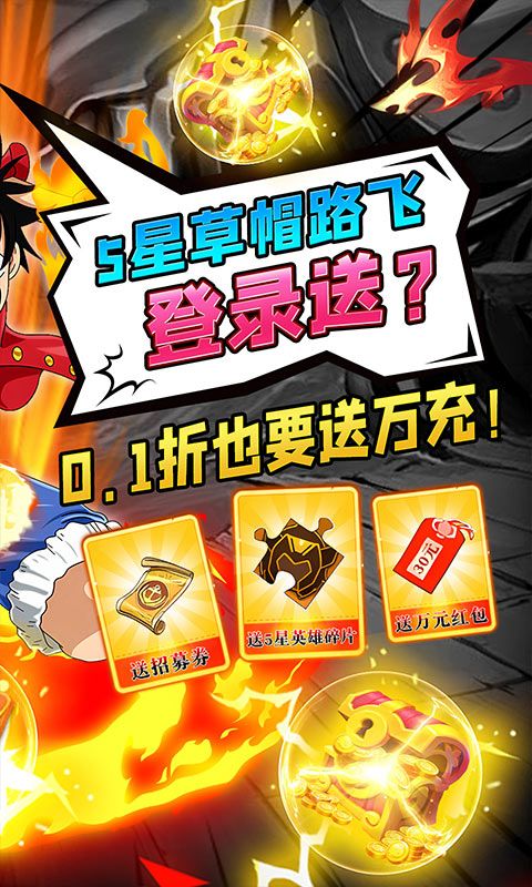 ★开服狂欢赠送五皇香克斯和大量材料;