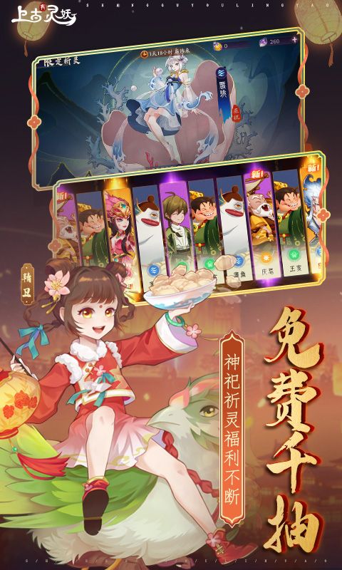 《上古有灵妖(0.1折山海经送千抽)》是一款以山海经灵妖异兽为主题的国风放置卡牌游戏,在游戏中你将拥有掌控世间万物生命的能力,并以司命的身份探索山海,你将见到众多神话传说中的人物,还会遇到各类传说中的奇珍异兽,同时感受大荒的人文风情。找寻鸿蒙古珏下落的你会结识诸多灵妖伙伴,一路击败六界强敌,最终将会揭开一段来自远古洪荒时期的惊天秘闻。