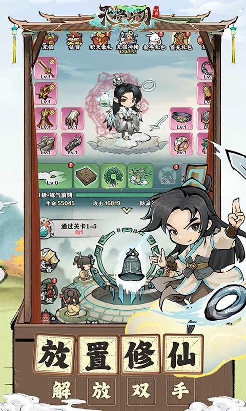 《天堂之刃(0.1折)》是一款Q版的,放置类的仙侠风RPG游戏,以「开箱」为核心,你在游戏中将会作为一个初出茅庐的小小仙人,能够通过不断开箱炼器、升级装备等方式击败对手最终成长为实力强大的仙尊。