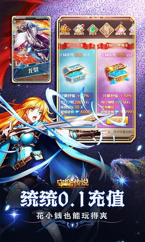 《守护者传说(01免费百抽英雄)》是一款日系二次元魔幻冒险手游,集挂机、卡牌、闯关,冒险,养成于一体的休闲挂机游戏,别出心裁的战棋挂机玩法必将带给各位勇士独特的游戏体验。在这个充满魔法与剑的幻想世界中,玩家将扮演一位勇敢的少年或少女,踏上一段充满挑战与奇遇的冒险旅程。游戏以精美的画面、丰富的剧情,多样的玩法,以及超多的福利!吸引着广大玩家前来体验!无需下载即可游戏内收集英雄,神装,神器,神兵,神龙,踏上英雄王的宝座吧!拔剑吧勇士!!!