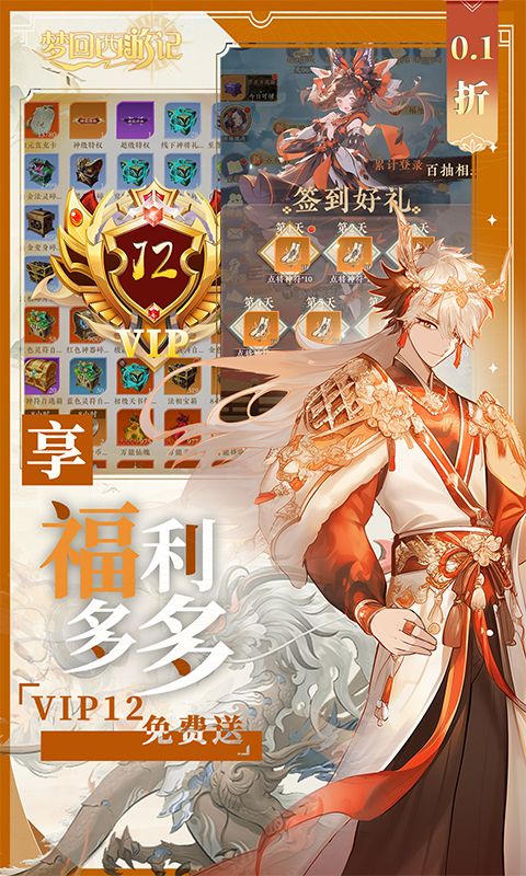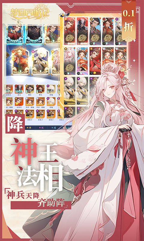 《梦回西游记(0.1折神王免费版)》 是一款以国风妖怪为游戏背景题材的趣味养成放置卡牌手游,游戏讲述盘古开天后,万千种族孕育而生的奇妙异界探险故事。在游戏中,你将被选为天命之人,通过召集人、妖、佛、道界的大能者,开启自身的传奇修行之旅。