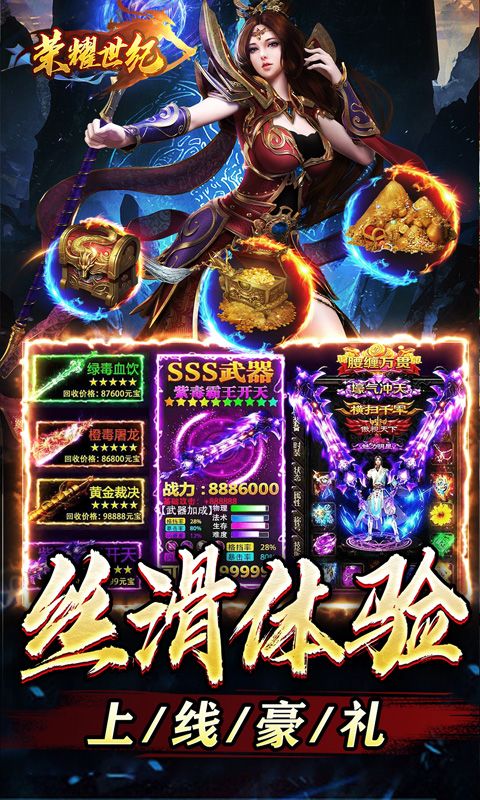 《荣耀世纪(高爆英雄合击)》经典1.85合击,一比一还原端游,升级免费,装备,材料,货币,全靠靠打。货币兑换,散人扛米专服-三职业平衡,装备保值,散人长期追梦,长久更新。官方承诺:小资仅是相对增加游戏速度,零氪有时间同样能登顶巅峰!