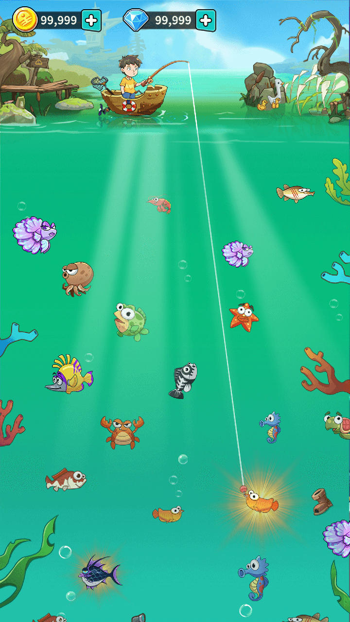 你在城市打拼了多年,人到中年却一事无成。面对着无望的生活和快要垮掉的身体,你辞掉了工作,用仅存的积蓄搬到了一座远离城市的小岛上。在这里你遇到了一位神秘老者并从他那里获赠了一根鱼竿,你要用这根鱼竿学习垂钓并开启属于自己的逆袭人生!这是一场轻松快乐的钓鱼之旅!你可以在各种不同的小岛之间垂钓,一杆下去,鳊鱼、鲇鱼、石斑、罗非……等等等等,各种各样的鱼统统上钩!丰富的渔获不仅能高价卖给商人升级钓具,还可以用来打造专属于自己的梦幻水族馆!!!如果你看到稀有的锦鲤出现千万不要错过,钓到之后不仅能卖出天价,还能找神秘老者进行祈福转运哦。