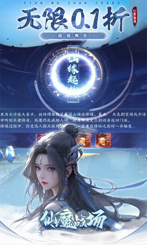 2024全新爆款3D仙侠手游力作《仙魔战场》火爆来袭!跟随主线,美轮美奂的仙侠世界就此展开,全新引擎打造,大地图任意传送,精美场景自由探索,五大职业职业任君挑选。即时战斗机制,江湖恩怨一触即发!不断磨炼自我,等级飙升,转生飞仙,问鼎魔狱巅峰!精准定位真实在线社交,修仙情缘系统,邂逅命中注定的TA,携手筑梦家园,双修加成提升快人一步,你在还等什么?!