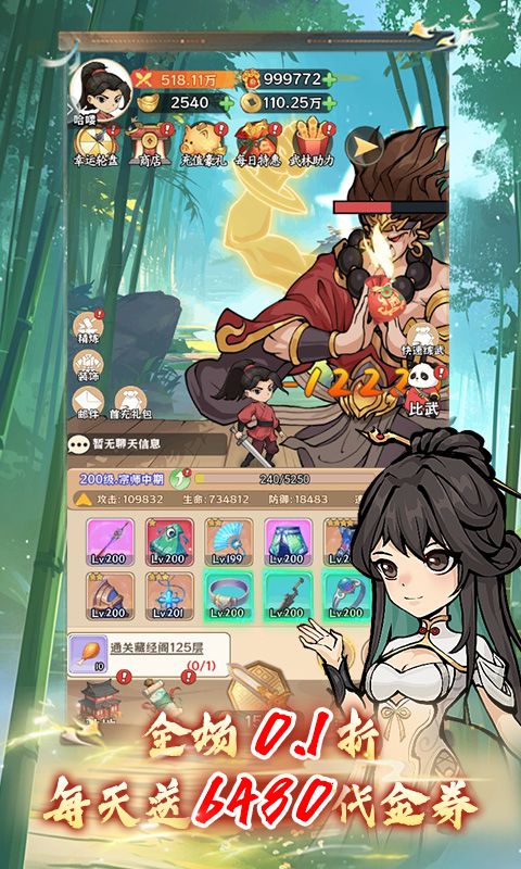 《绝世秘籍(0.1折免费版)》是一款以国风为主题的武侠手游,玩家将扮演一位初入江湖的小白,通过不断冒险和历练,打败路途中遇见的敌人,不断成长为绝顶高手。游戏拥有精致的卡通风格画面表现,简单操作方式让每位玩家都能第一时间上手,轻松挂机感受简单养成魅力,在不断的练武旅途中尝试通过合理的操作完成魅力武侠之旅。