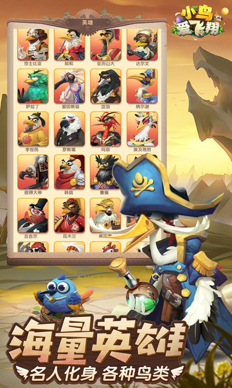 《小鸟爱飞翔》充值比例1元:10钻石;是一款以虚构世界各地英雄为背景的冒险题材放置卡牌类游戏。在游戏中,玩家可以收集自己喜欢的英雄,对其进行升级培养,提升自己的战斗力。还可以在征战中攻击野怪、收集资源;可以与其他玩家对战;还可以加入公会,与公会其他成员共同战斗,争夺第一公会的宝座,带领你的公会走向胜利!更有神奇的宝藏和遗迹,等待玩家发掘。游戏有超多关卡,难度由低到高。并且有通天塔等挑战型玩法,同样的由易至难,享受战斗的乐趣。在探索的过程中,需要通过培养各种英雄,提高综合战斗力来击败成长之路的怪物,才能获得更好的收益以及奖励。通过游戏可以培养玩家的探索求知能力、增加玩家的观察力、鼓励玩家敢于挑战,使玩家无形之中建立起勇于面对各种难关,对于任何事都有一种自强不息的心态。
