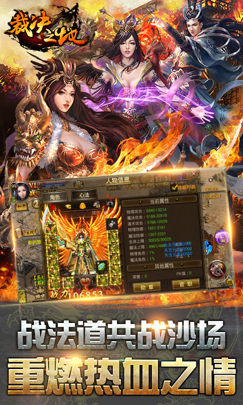《裁决之地》是一款注重PK的即时战斗手机游戏,古朴唯美的画风、热血攻城战、各类丰富活动,高自由度的玩法集合,同时实现了以手机平台形式展现海量用户同场景的游戏互动和万人同攻城的完美结合。宏大的背景、精美的地图、特色的系统,战士、魔法师和道士三大职业风云际会,谁傲视群雄!