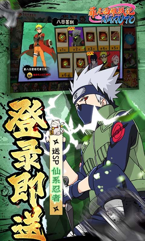 ★【八日登录】次日再领SP仙系忍者-旗木卡卡西(须佐能乎);八日登录,SP仙禁忍者三选一,豪礼送不停!