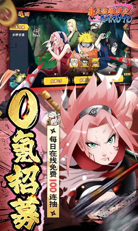 ★【在线福利】每日在线免费100连抽,海量忍者抽不停,组建你的传奇忍者小队!