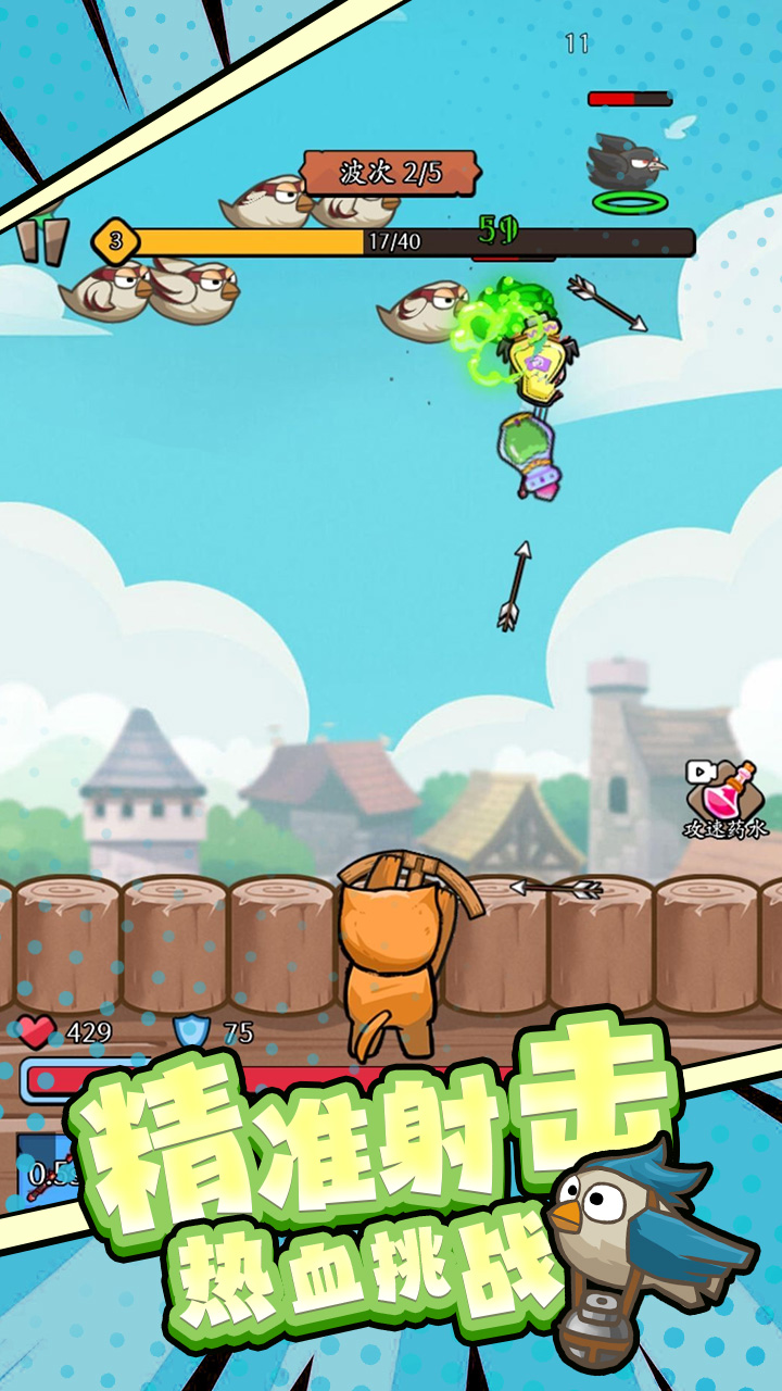 守卫猫咪前哨站,击退来袭!一场未知的危机悄然降临。为了拯救家园,猫咪勇士不得不组建一支无敌特攻队,爬上城墙,勇敢地与来自天空的敌人决斗。然而,远处的高空上,无数凶猛的敌人正等待着他们的到来。勇士们必须在这片陌生的土地上,不断加固自己的基地,抵御一波又一波的敌人攻击,并搜集足够的能源水晶,才能拯救自己的家园。快来加入这场激烈的战斗吧!