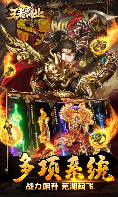 《王者霸业(山海神将怒斩开天)》传奇手游巨制震撼来袭!磅礴铁血硬派画风、炫酷华丽的特效,一秒唤醒战斗热血。神装秒拾、烈火开天,畅享极致打宝快感。良心爆率,材料靠刷装备靠打,微氪肝帝也能封神!独特任务、神境探险、单挑群战,开启传奇新玩法。不整套路,上线登录即领绝版神将、自动拾取、自动回收,更有大量材料、免费VIP等你获取,助你秒登战力巅峰,尽享傲视群雄的传奇之旅!