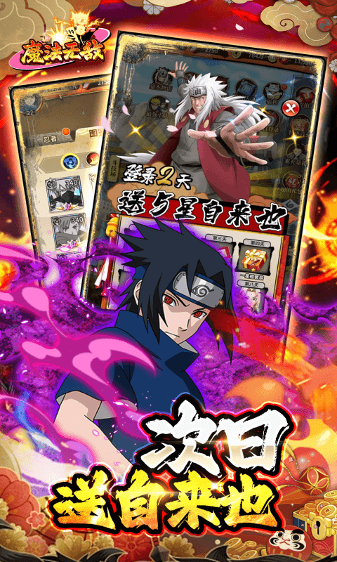 ★八日登录,次日赠送自来也,八日赠送纲手;