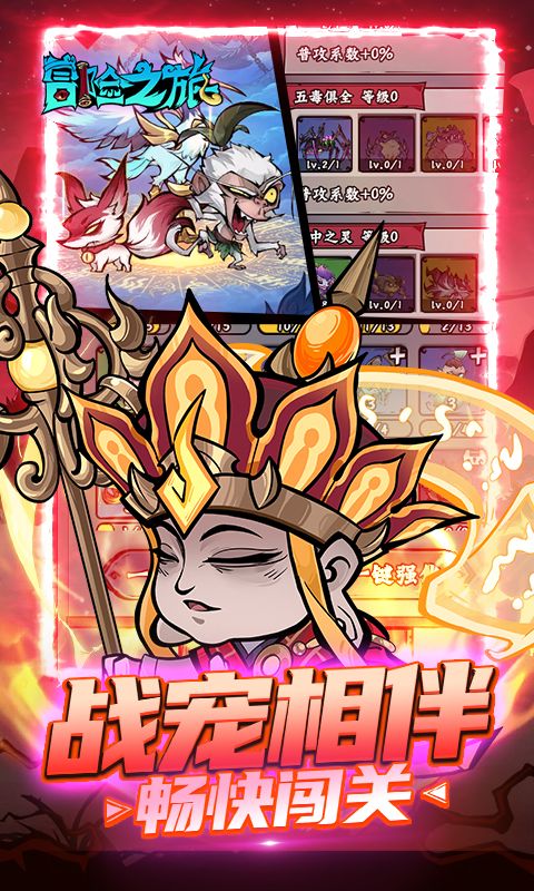 《冒险之旅(免费版0.1折)》本游戏是一款玩法简单的放置类RPG游戏,基于西游记构建了一个虚拟世界,玩家可以扮演不同的取经人,获得耳熟能详的神兵法宝,学习各种神通法术,结识形态各异的同伴,在各种玩法中降妖除魔。